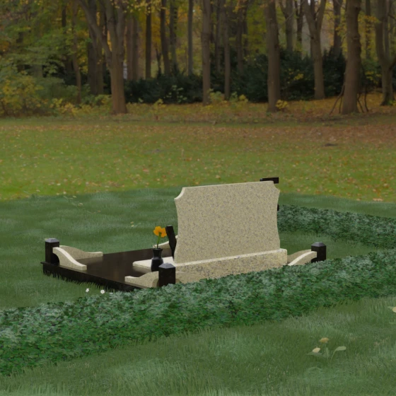 Горизонтальная ориентация стелы и массивная ограда символизируют вечный покой, незыблемость семейных уз и защиту. Светлые вставки на фоне темного гранита олицетворяют надежду и светлую память, которая побеждает тьму забвения. Это выбор для тех, кто хочет передать силу характера, мужество и достоинство почивших.