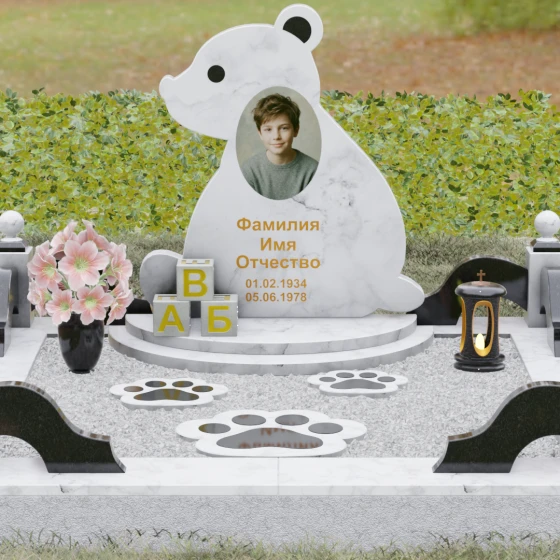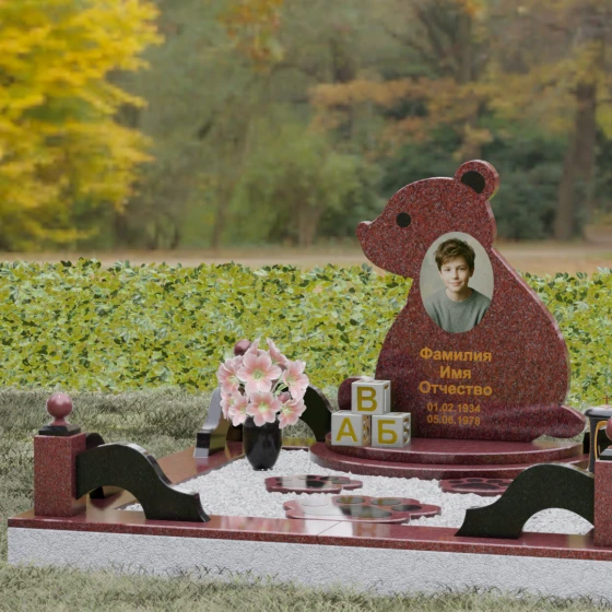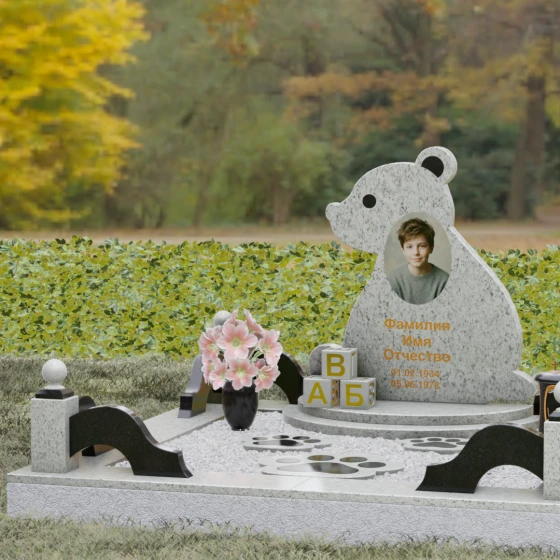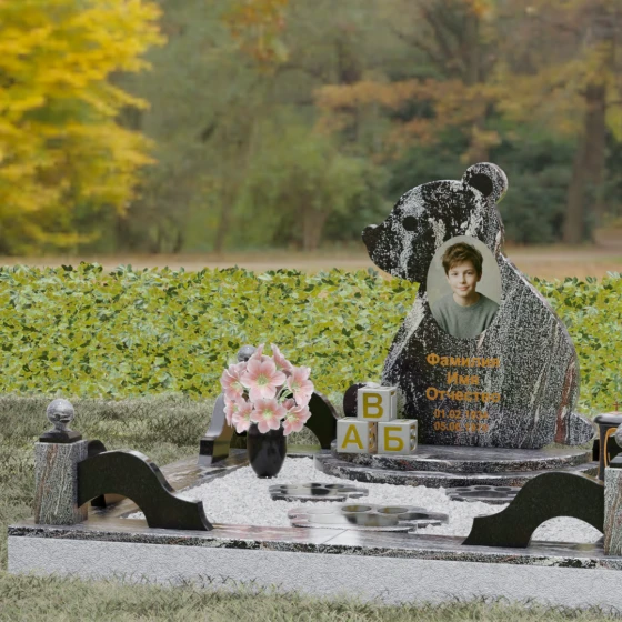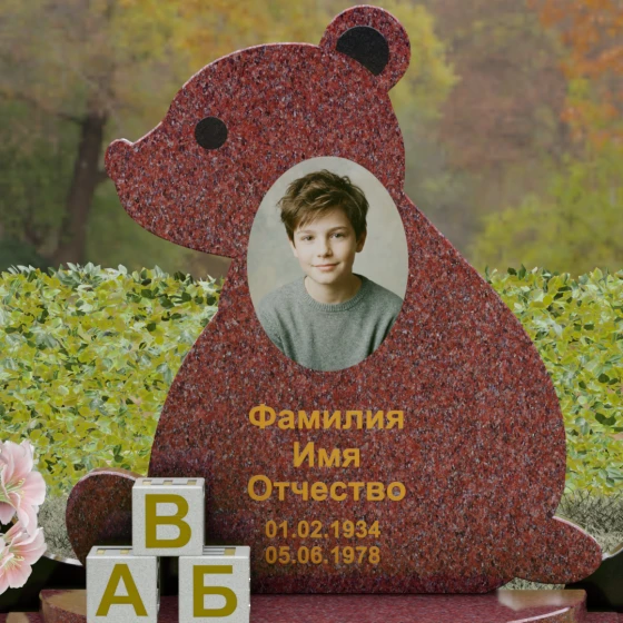 Кому подойдет: Данная модель разработана специально для оформления захоронения ребенка. Она идеально подходит родителям, желающим выразить свою безграничную любовь и горечь утраты через светлый и понятный образ. Сочетание монументальности натурального гранита и трогательной формы «мишки» позволяет создать атмосферу светлой памяти, подчеркивая, что душа близкого человека навсегда останется окруженной заботой и теплом.