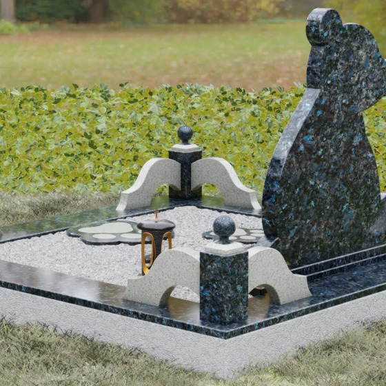 Для того чтобы мемориал максимально точно отражал характер и личность человека, мы предлагаем выполнение данной модели в 8 цветовых решениях. На выбор представлены 7 сортов элитного гранита (Гамбро-диабаз, Амфиболит, Балтик грин, Блю Перл, Дымовский, Лезниковский, Мансуровский) и белоснежный мрамор Тассо. Например, глубокий черный Габбро-диабаз подчеркнет строгость и монументальность, в то время как мерцающий Блю Перл или светлый Мансуровский гранит придадут композиции легкость и небесную чистоту. Комбинирование двух контрастных оттенков камня, как показано на образце, позволяет выделить художественные детали и создать эффектный визуальный объем.