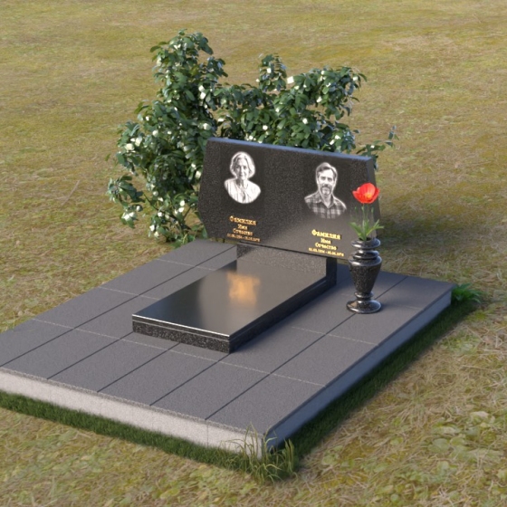 Представляем вам ритуальное изделие – памятник на могилу (Артикул: ПГ018), архитектурное решение, в котором строгость линий сочетается с глубоким символизмом. Это не просто надгробие, а осязаемое воплощение уважения и вечной памяти об ушедшем человеке. Стела, выполненная в форме сдержанного прямоугольника, слегка расширяющегося кверху, символизирует восхождение души к небесам. Грани камня тщательно обработаны, создавая игру света и тени, подчеркивающую монументальность и значимость этого места памяти. Слева и справа, верхние углы стелы имеют элегантные скосы, смягчающие строгость формы и придающие ей утонченность. На зеркальной поверхности камня выгравированы портреты усопших, их имена и даты жизни, выполненные с безупречной точностью и вниманием к деталям. Под портретами располагаются лаконичные надписи, выполненные строгим шрифтом, добавляющие памятнику сдержанности и достоинства. Дополнительная горизонтальная плита, расположенная перед стелой, создает ощущение завершенности и служит местом для возложения цветов или свечей. Этот элемент композиции выполнен в той же стилистике, что и основная стела, поддерживая общую гармонию и пропорциональность мемориального комплекса.