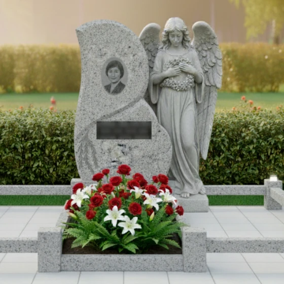 Этот мемориальный комплекс являет собой воплощение скорби и светлой надежды, где центральное место занимает скульптура ангела, словно оберегающего покой ушедшего. Плавные линии стелы, дополненные изящной гравировкой, контрастируют с монументальностью основания, создавая гармоничный и запоминающийся образ. Благодаря возможности выбора из восьми вариантов камня, включая семь видов гранита и благородный мрамор Тассос, памятник может обрести индивидуальный облик, соответствующий характеру и памяти дорогого человека.