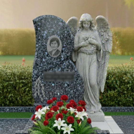 • Стела: Фигурная стела из полированного гранита с плавными очертаниями, символизирующими небесный свод. На стеле предусмотрено место для портрета и памятной надписи, а также изящной гравировки в виде ветви.