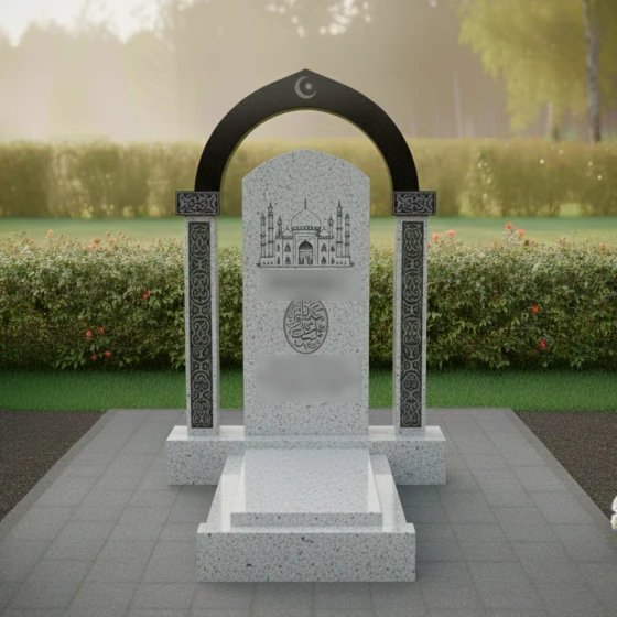 Кому подойдет: Данное архитектурное решение станет идеальным выбором для тех, кто ищет достойный способ выразить почтение к мусульманским традициям. Модель 726 одинаково гармонично подойдет для мужского и женского захоронения, благодаря своей сбалансированной геометрии. Это выбор семей, которые ценят фундаментальность, эстетическую завершенность и стремятся создать на месте памяти атмосферу святости, тишины и глубокого уважения к корням.