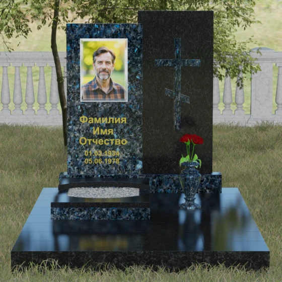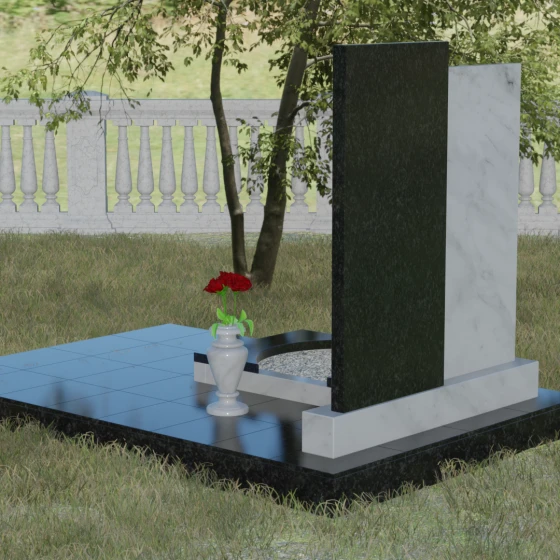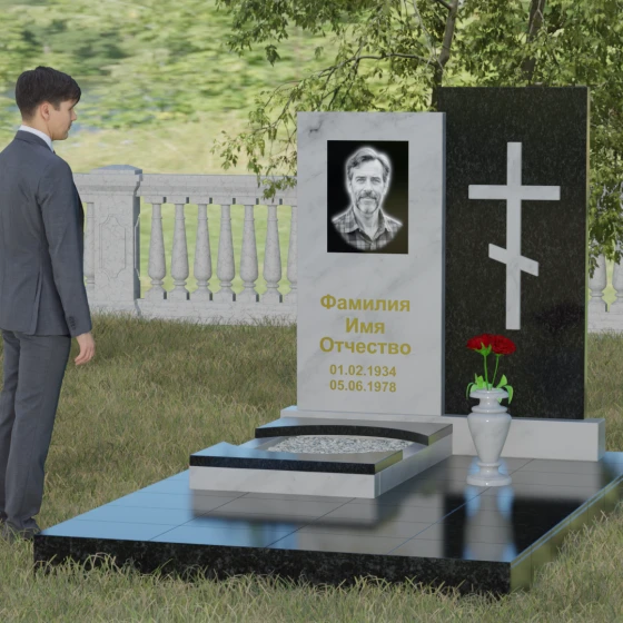 Кому подойдет: Эта модель является универсальным решением для тех, кто ищет баланс между традициями и современным дизайном. В строгом контрастном исполнении (черный и белый гранит) мемориал станет достойным памятником отцу, мужу, брату или дедушке, подчеркивая их мужество и твердость. При выборе более мягких оттенков, таких как мрамор Тассо или гранит Блю Перл, композиция приобретает нежность и светлую грусть, идеально подходя для оформления захоронения матери, жены или дочери. Это выбор людей, стремящихся выразить свою глубокую скорбь через благородную эстетику камня, которая останется неизменной для многих поколений потомков.