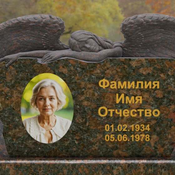 Оформление: Благодаря большой площади горизонтальной плиты, эта модель идеально подходит для размещения крупного художественного портрета и каллиграфических надписей. Мы рекомендуем использовать глубокую гравировку с последующим покрытием сусальным золотом или «под золото», что в сочетании с темными видами гранита подчеркнет статусность и величие монумента.