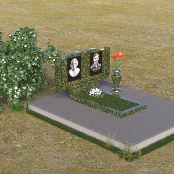 Ритуальное изделие ПГ036 представляет собой сдержанную, но исполненную достоинства композицию, созданную для сохранения памяти о близких. Два прямоугольных элемента стелы, соединенные вместе, образуют волнистый верх, напоминающий раскрытую книгу судеб. Грани обеих частей искусно обработаны, создавая мягкий, обтекаемый силуэт. Зеркальная полировка черного гранита служит идеальным фоном для гравировки портретов и надписей, словно запечатлевая светлые воспоминания в вечном камне. Слева и справа, в верхней части стелы, вырезаны лаконичные кресты, символизирующие веру и надежду. Тонкие линии врезаются в полированную поверхность, создавая игру света и тени, и добавляя глубину изображению. Горизонтальная плита, расположенная перед стелой, выполнена из того же черного гранита с зеркальной полировкой, отражая небо и окружающий пейзаж, создавая ощущение легкости и воздушности. Вместе с тем, основание памятника выполнено из серого камня, что придает всей композиции устойчивость и основательность.