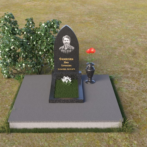 Величественная стела ПВ 032 представляет собой образец лаконичной элегантности и сдержанной красоты. Её строгая, но изящная форма притягивает взгляд, а тщательно продуманные детали создают атмосферу покоя и умиротворения. Верхняя часть стелы выполнена в форме плавной арки, устремленной ввысь, символизирующей духовное вознесение. Скругленные грани смягчают строгость линий, придавая монументу более мягкий и теплый облик. В верхней части стелы размещается портрет усопшего, выполненный с высокой степенью детализации, а ниже – гравировка с именем, датами жизни и трогательной эпитафией. Нижняя часть стелы переходит в прямоугольное основание, которое гармонично сочетается с общей композицией. Зеркальная полировка черного гранита создает эффект глубины и отражения, словно в вечности. Аккуратная подставка под памятник, выполненная из серого камня, дополняет композицию и придает ей законченный вид.