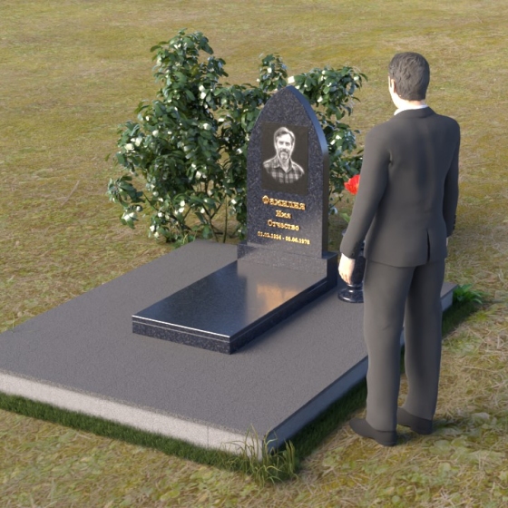 Плавные изгибы арки символизируют жизненный путь, полный взлетов и падений, радостей и печалей. Закругленные грани отражают мягкость характера и душевное тепло усопшего. Черный цвет полированного гранита символизирует скорбь и уважение, а его зеркальная поверхность – вечную память. Общая форма монумента создает ощущение покоя и защиты, словно оберегая сон ушедшего. Этот памятник – не просто каменное сооружение, а символ вечной любви и памяти, который будет передаваться из поколения в поколение.