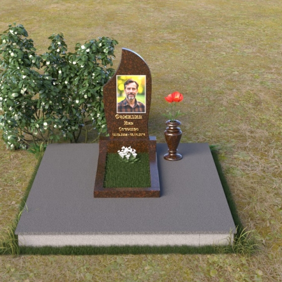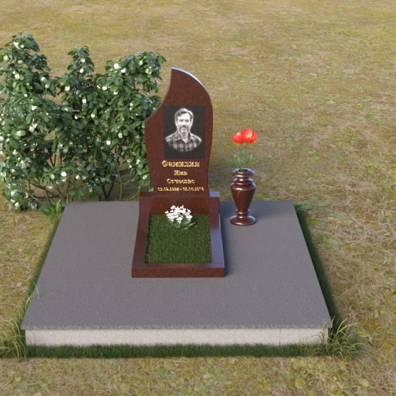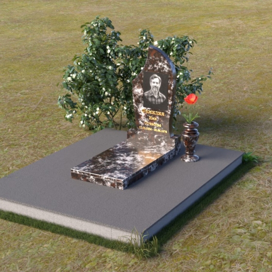 Форма этого надгробия предоставляет широкие возможности для персонализации. Портрет усопшего, выполненный методом гравировки, идеально впишется в верхнюю часть, органично дополняя плавные линии камня. Золотое начертание имени и дат жизни, словно высеченное самим временем, придаст монументу особую торжественность и значимость. Рядом с основанием можно установить небольшую вазу для живых цветов, которые станут символом неувядающей любви и памяти. Благородство формы позволяет максимально раскрыть красоту камня, подчеркнуть его уникальную текстуру и оттенок.