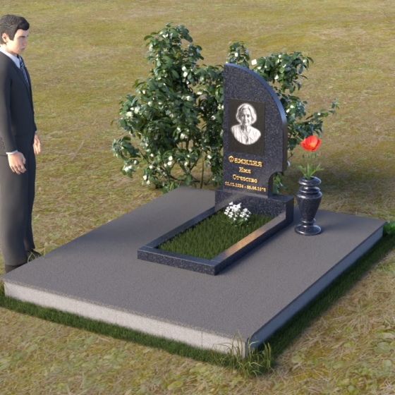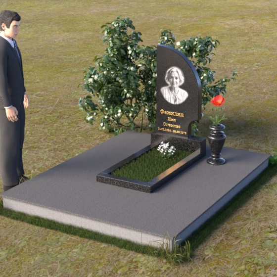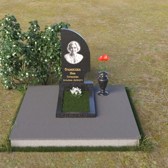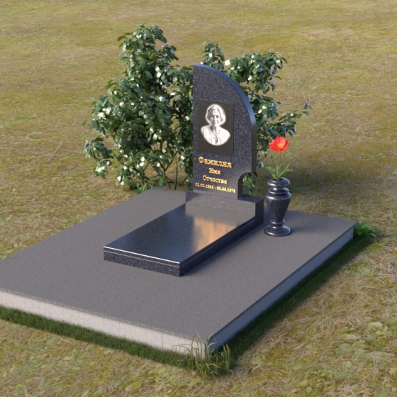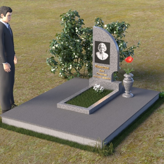 В основе этого мемориального комплекса лежит прочный и долговечный гранит. Этот материал известен своей исключительной стойкостью к атмосферным воздействиям, перепадам температур и механическим повреждениям. Гранит практически не впитывает влагу, что делает его морозостойким и предотвращает образование трещин в зимний период. Зеркальная полировка, достигнутая благодаря тщательному шлифованию, придает камню благородный блеск и подчеркивает его природную красоту. Плотность гранита гарантирует, что изображение и надписи, нанесенные на поверхность, сохранят свою четкость и яркость на долгие годы, не подвергаясь выцветанию или истиранию. Фундамент и горизонтальная плита, выполненные из того же гранита, обеспечивают устойчивость всей конструкции, символизируя незыблемость памяти и уважения. Массивность и основательность исполнения говорят о том, что этот памятник простоит века, оберегая покой ушедшего.