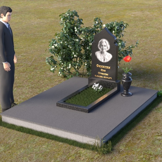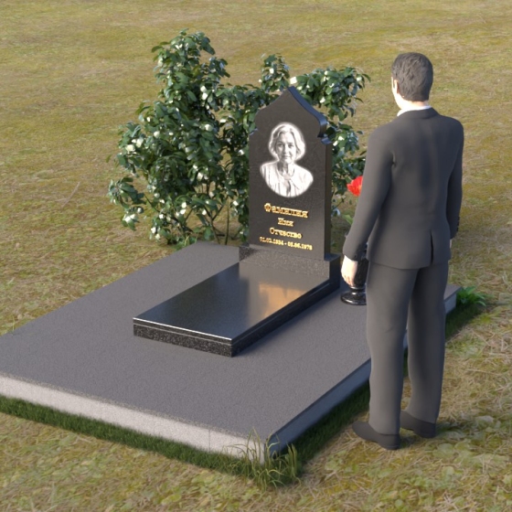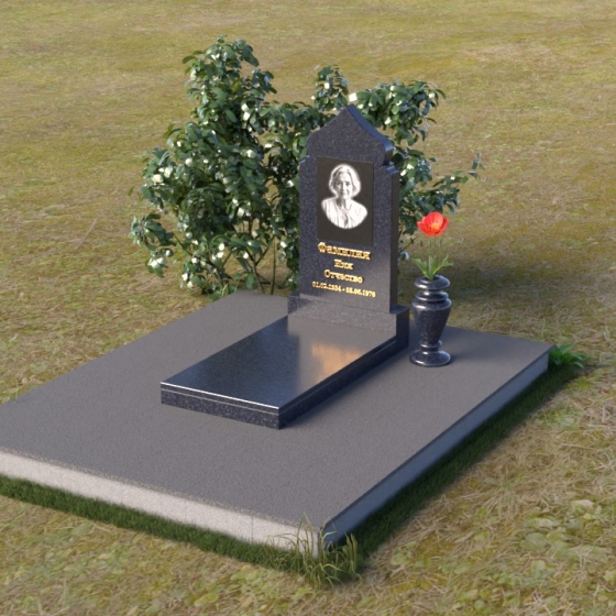 Форма стелы, напоминающая свод, символизирует небесный покров, защиту и покой. Плавные линии и отсутствие острых углов создают ощущение гармонии и умиротворения. Черный цвет гранита, отполированного до зеркального блеска, символизирует вечность и незыблемость памяти. Горизонтальная плита основания – это символ прочности и надежности, олицетворяющий прочную связь с землей. Вертикальная направленность стелы – это стремление к небесам, к духовному миру. Вся композиция в целом выражает идею вечной памяти, покоя и надежды.
