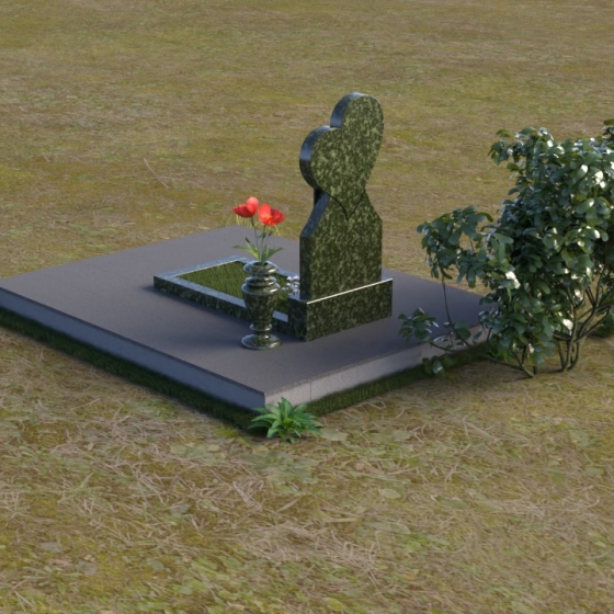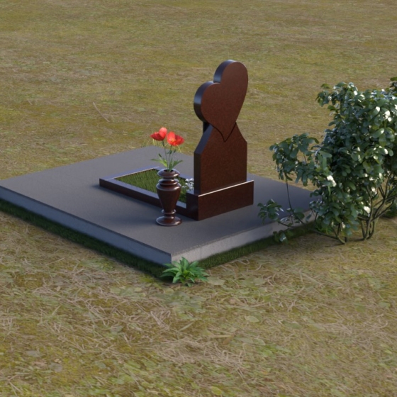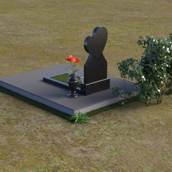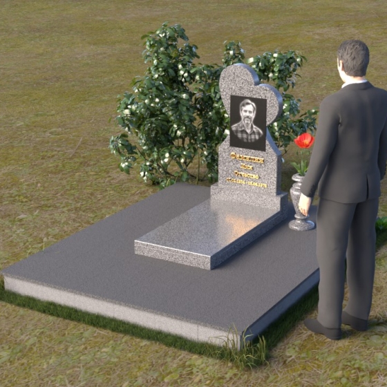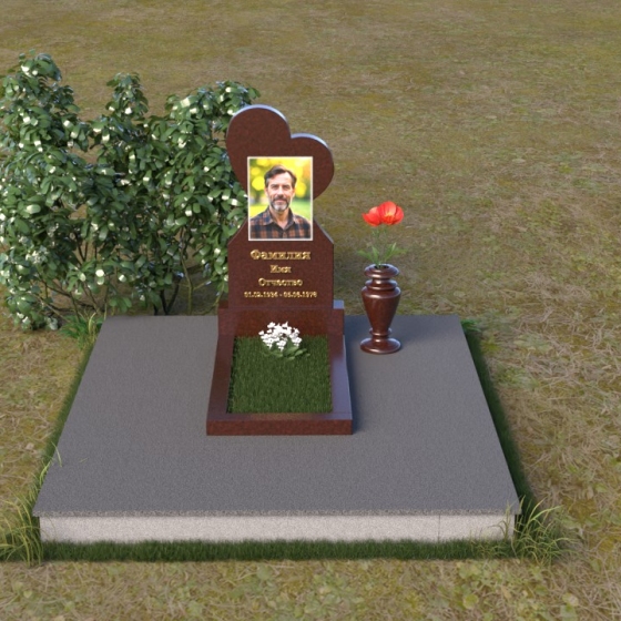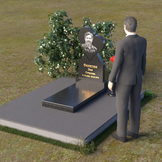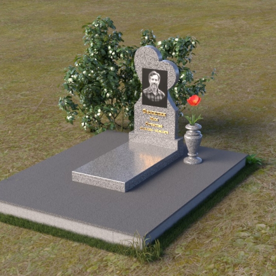 Этот памятник представляет собой изысканное сочетание строгих линий и плавных изгибов, создающее гармоничный и запоминающийся образ. Основная стела выполнена в форме сердца, что является традиционным символом любви и скорби. Верхняя часть сердца плавно переходит в более узкую часть, образуя своеобразный силуэт, устремленный ввысь. Грани стелы тщательно отполированы, что придает камню зеркальный блеск и подчеркивает его глубокий цвет. На лицевой стороне стелы располагается портрет усопшего, выполненный с высокой степенью детализации. Ниже портрета выгравированы имя, отчество и фамилия, а также даты рождения и смерти. Надписи выполнены изящным шрифтом, который придает памятнику благородный вид. Основание стелы выполнено в виде прямоугольной плиты, которая также тщательно отполирована. Плита служит надежной опорой для стелы и обеспечивает ее устойчивость. Фаски на плите аккуратно обработаны, что придает ей законченный вид.