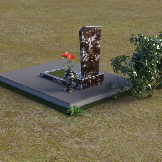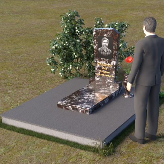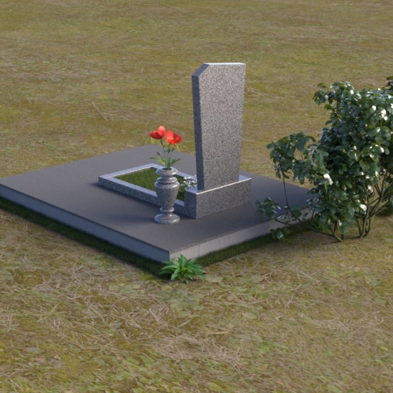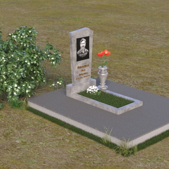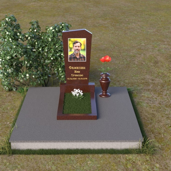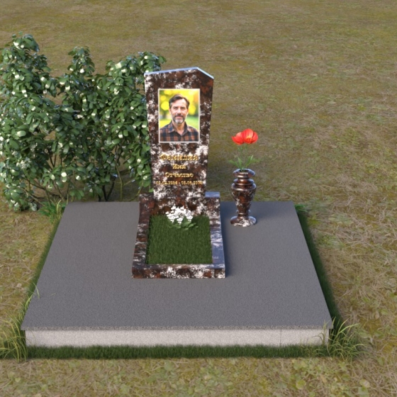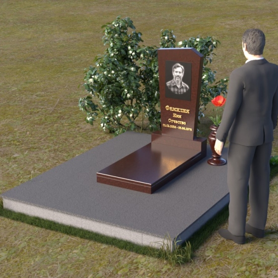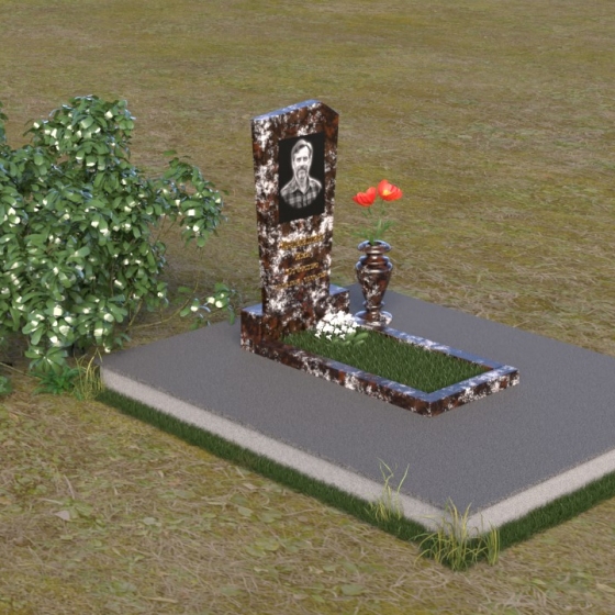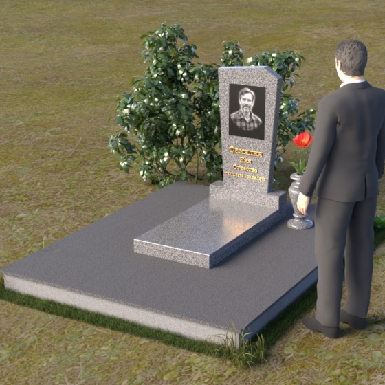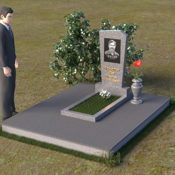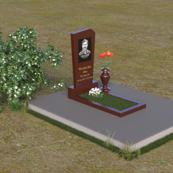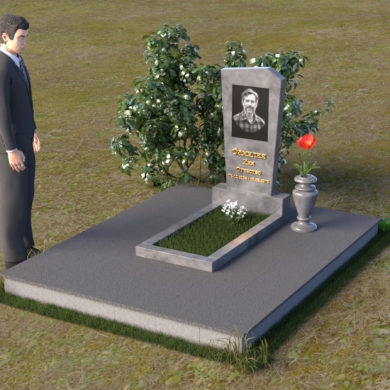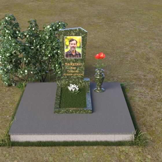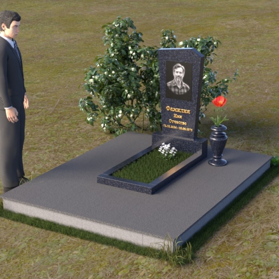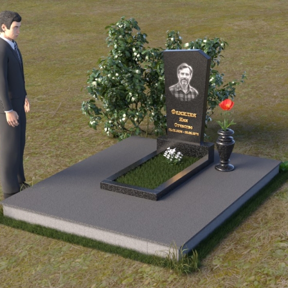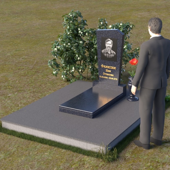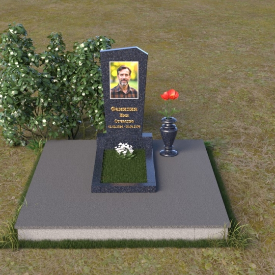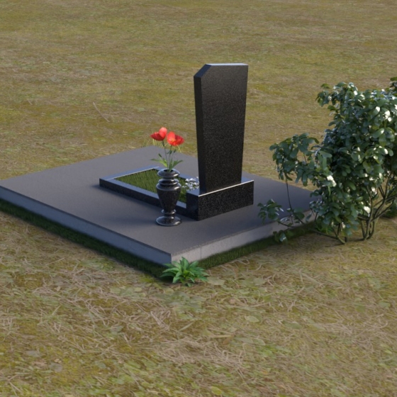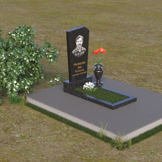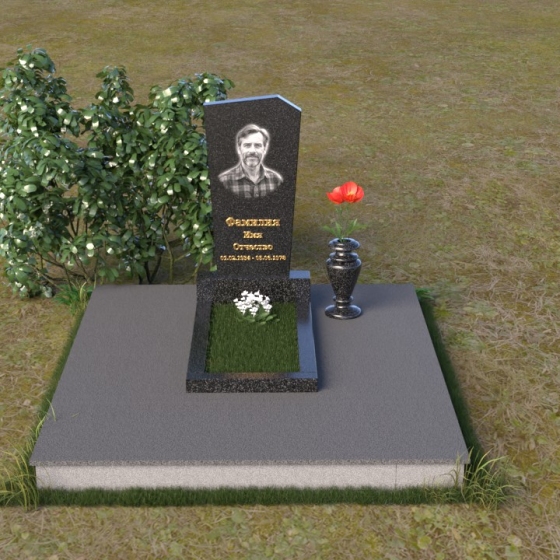 Нижняя часть композиции состоит из горизонтальной плиты, которая служит основанием для стелы. Плита также выполнена из полированного гранита, отражая свет и визуально расширяя пространство вокруг памятника. Рядом со стелой располагается небольшая ваза из черного гранита, предназначенная для живых цветов. Простота и элегантность дизайна позволяют сосредоточиться на главном – памяти о дорогом человеке.
