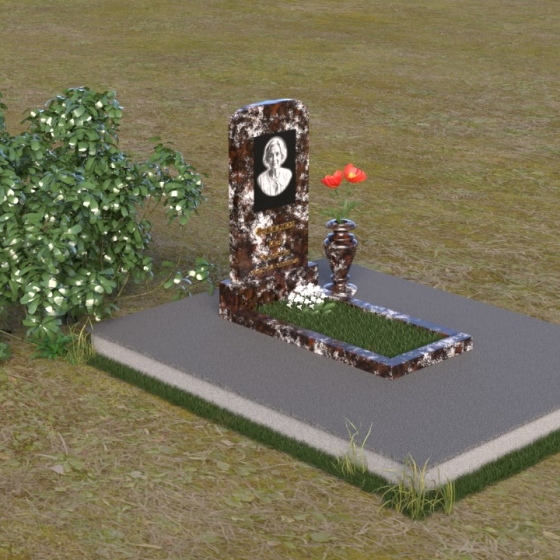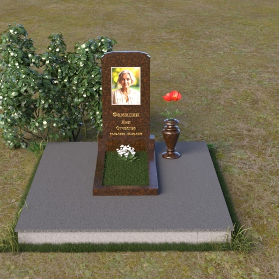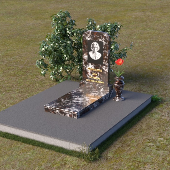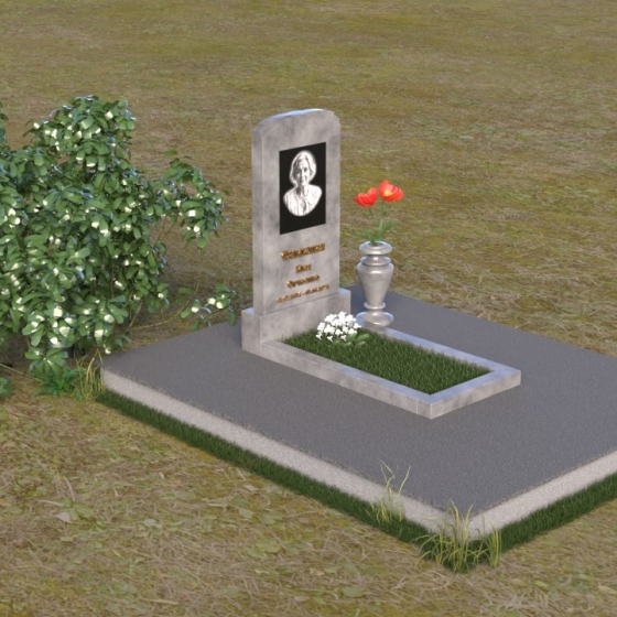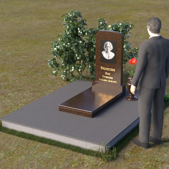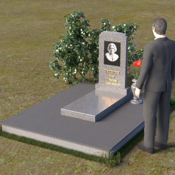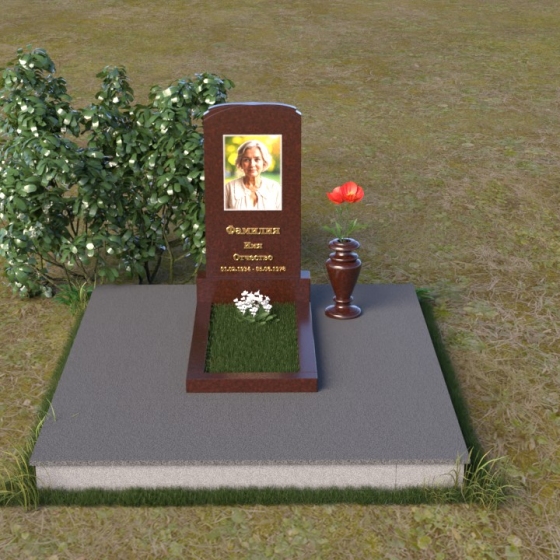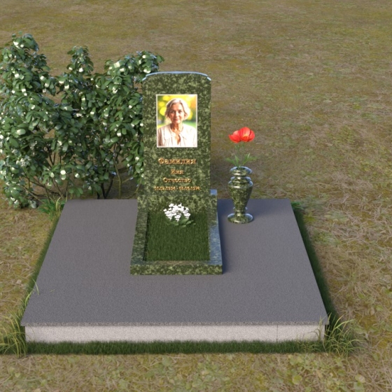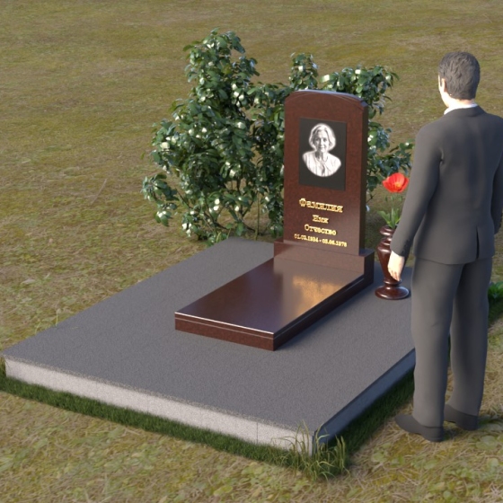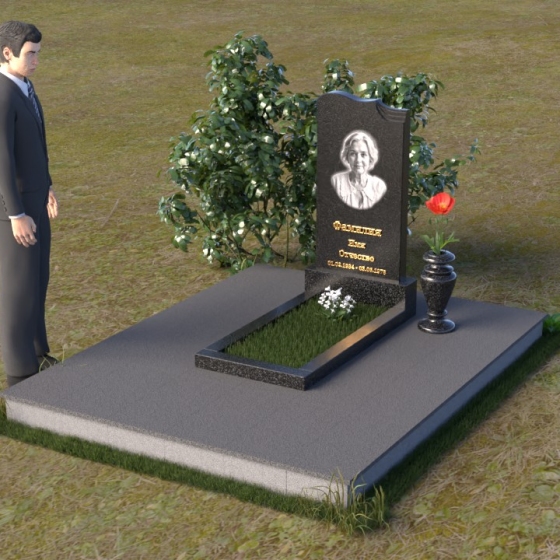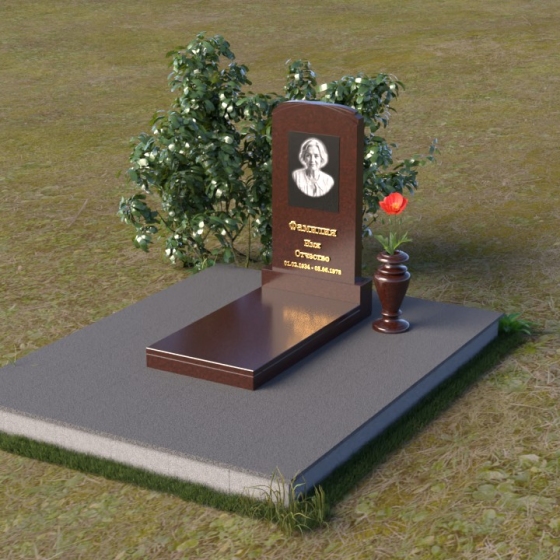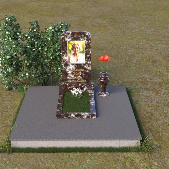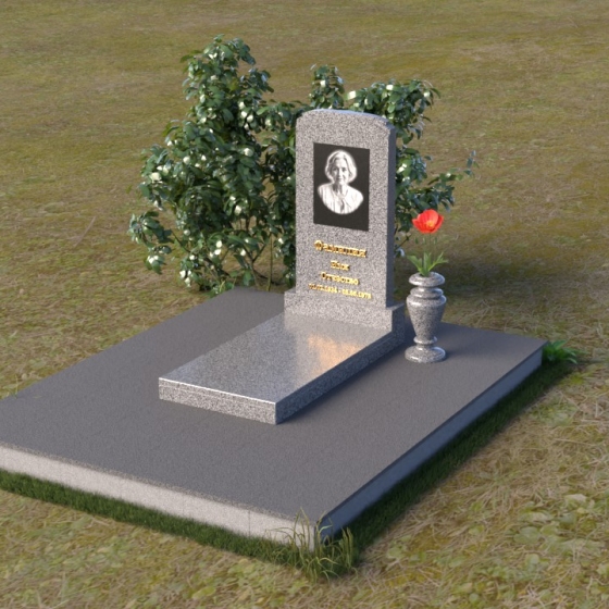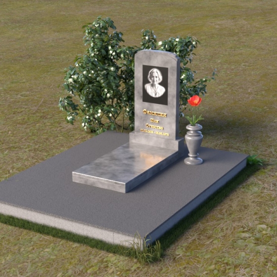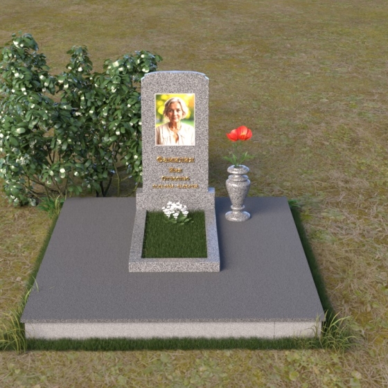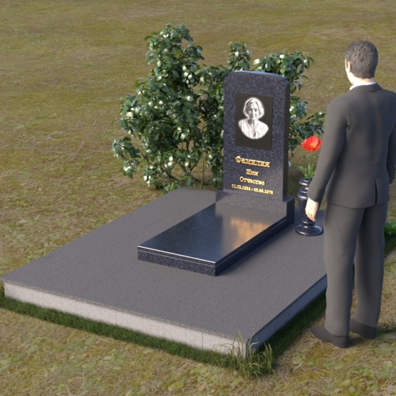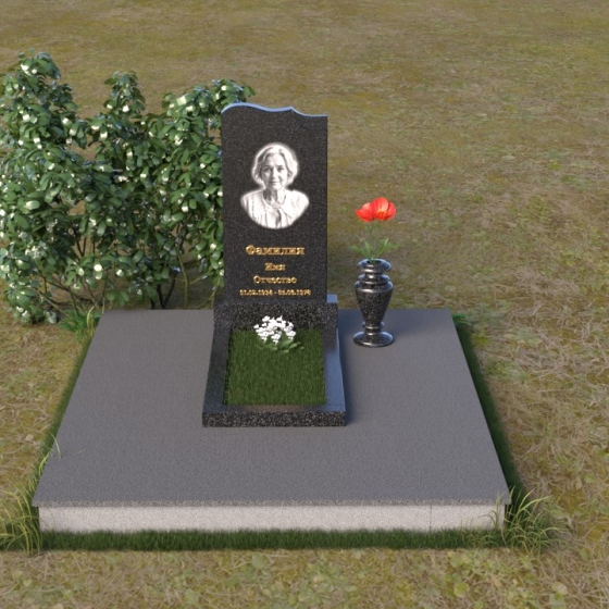 Скругленные формы верха стелы символизируют покой и умиротворение, достигнутые душой после земной жизни. Прямые линии основания говорят о прочности и нерушимости памяти, о вечной связи между мирами. Контраст между полированной поверхностью и матовым камнем, использованным для портрета, подчеркивает переход от земного бытия к вечности, от видимого к невидимому. Общий силуэт памятника создает ощущение защиты и покоя, словно оберегая сон усопшего.