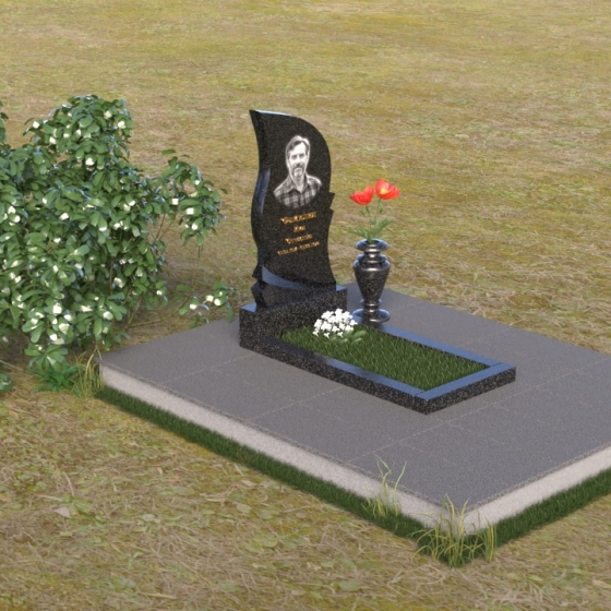 Плавные линии и сдержанная элегантность – вот что отличает это надгробие. Асимметричная форма стелы притягивает взгляд, а полированная поверхность словно зеркало отражает свет, создавая игру бликов и теней, подчеркивающую объем и глубину камня. В верхней части стелы располагается портрет, выполненный с высокой точностью и детализацией. Ниже – аккуратная гравировка с именем, датами жизни и теплыми словами.