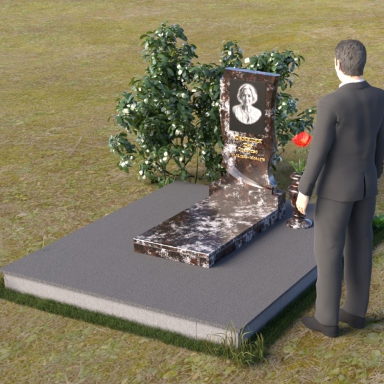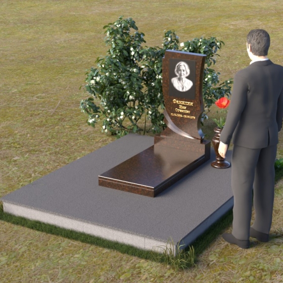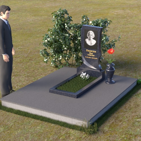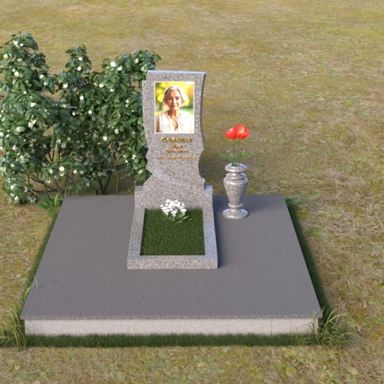 Волнообразная форма верхней части стелы символизирует жизненный путь человека, его взлеты и падения, радости и печали. Она напоминает о том, что жизнь – это непрерывное движение, поток, который рано или поздно заканчивается. Вместе с тем, эта форма выражает покой и умиротворение, которые обретает душа после смерти. Строгие прямые линии нижней части памятника олицетворяют стабильность и надежность, а темный цвет камня – вечность и незыблемость памяти. В целом, композиция памятника создает ощущение гармонии и завершенности, выражая глубокое уважение к усопшему и веру в вечную жизнь.